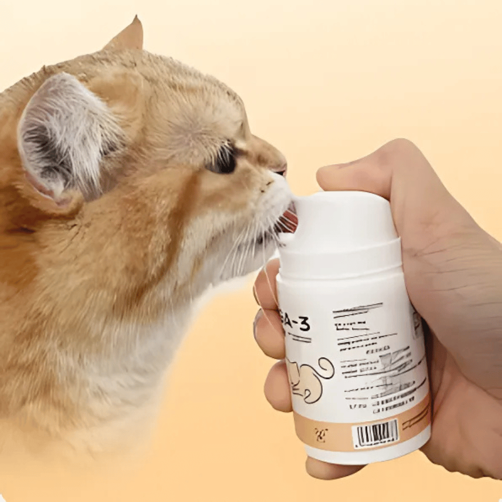 MeowLixir™ ist eine cremige Omega-3-Nahrungsergänzung für Katzen mit 85 % Fischöl, 11 Vitaminen, Antioxidantien und Taurin – entwickelt zur Förderung von Fellgesundheit, Immunsystem, Herz, Gelenken und mehr.